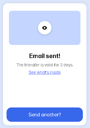 - Once the transfer is complete WeTransfer will send an email to the provided EQSS email address to download the files. EQSS will then be able to observe and review your sent files.